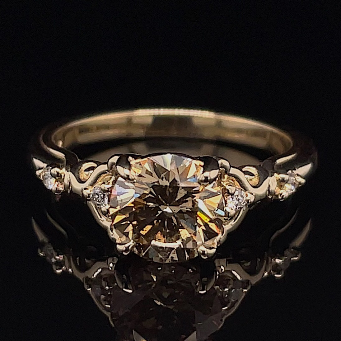 Crafted of 14k yellow gold, this ring features a sweet and sparkly, natural round brilliant diamond set in a classic solitaire mounting. We do our best to capture the vibrancy of the stones and metal colors, though they are even more beautiful in person.
