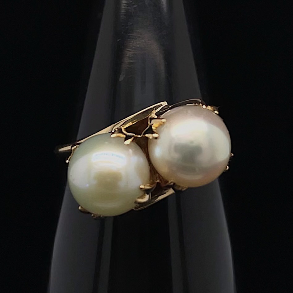 Antique 14k Pearl Toi Et Moi Ring