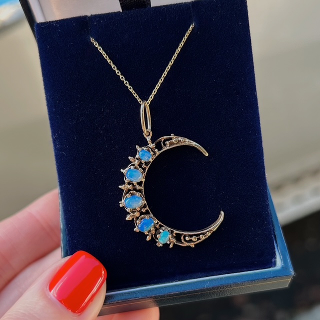 Estate Opal Crescent Moon Pendant