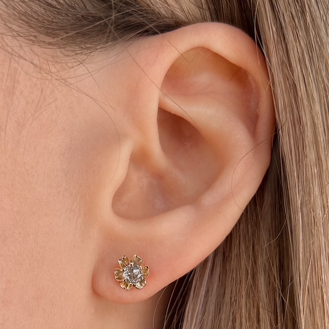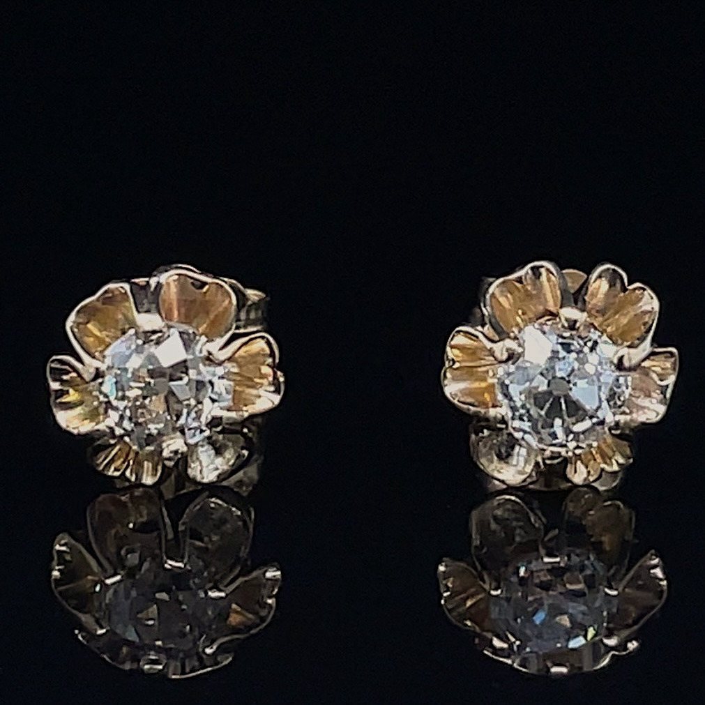 Crafted of 14k yellow gold, these antique studs feature natural old mine cut diamonds in beautifully timeless buttercup settings. We do our best to capture the vibrancy of the stones and metal, though these earrings are even more beautiful in person!