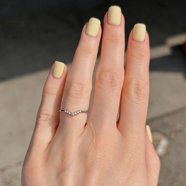 Seven natural round brilliant diamonds = .10 carats, G-H color, SI clarity.
