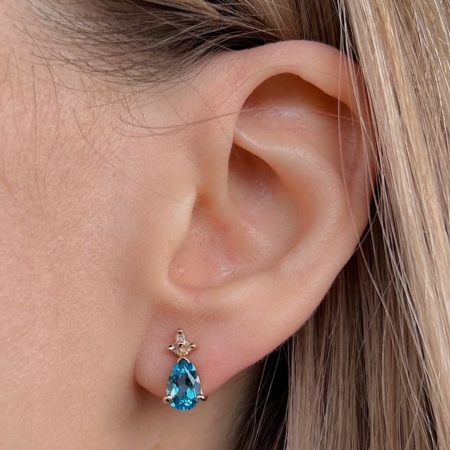 Crafted of 14k yellow gold, these earrings feature genuine ruby with a petite natural diamond set atop of each for a touch of sparkle. We do our best to capture the vibrancy of the stones and metal, though this piece looks even better in person.