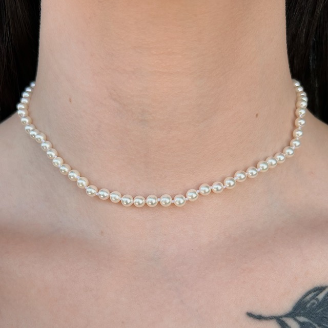 This lovely pearl strand goes with anything! Perfect for every day wear, a pearl strand is a must have in any woman’s jewelry collection. Featuring glowing, lustrous 4.5×5 mm Japanese Akoya pearls and a 14k yellow gold clasp, this strand is sure to please. We do our best to capture the vibrancy of the stones and metal, though this piece is even more beautiful in person!