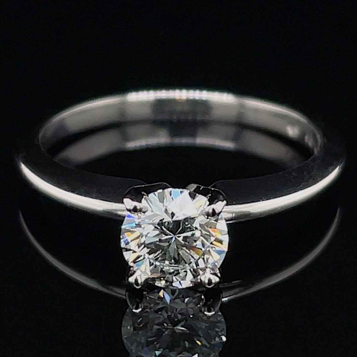 One recycled natural AGS certified round brilliant diamond = .56 carats, F color, SI1 clarity.