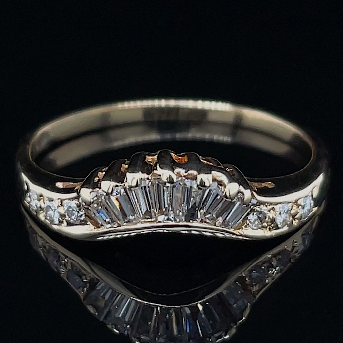 Seven natural baguette diamonds + six round brilliant diamonds = .33 carats, I-J color, VS clarity.