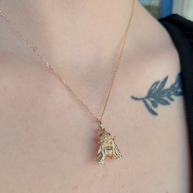 Crafted of 14k yellow gold, this beautiful fly pendant features genuine ruby eyes. Perfect for every day wear and the fancier occasions in life. We do our best to capture the vibrancy of the stones and metal, though this piece is even more beautiful in person!