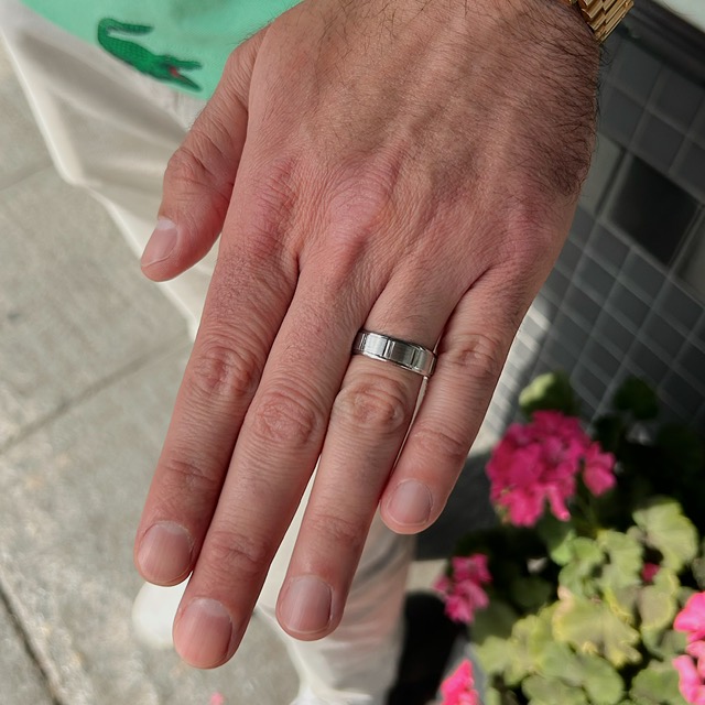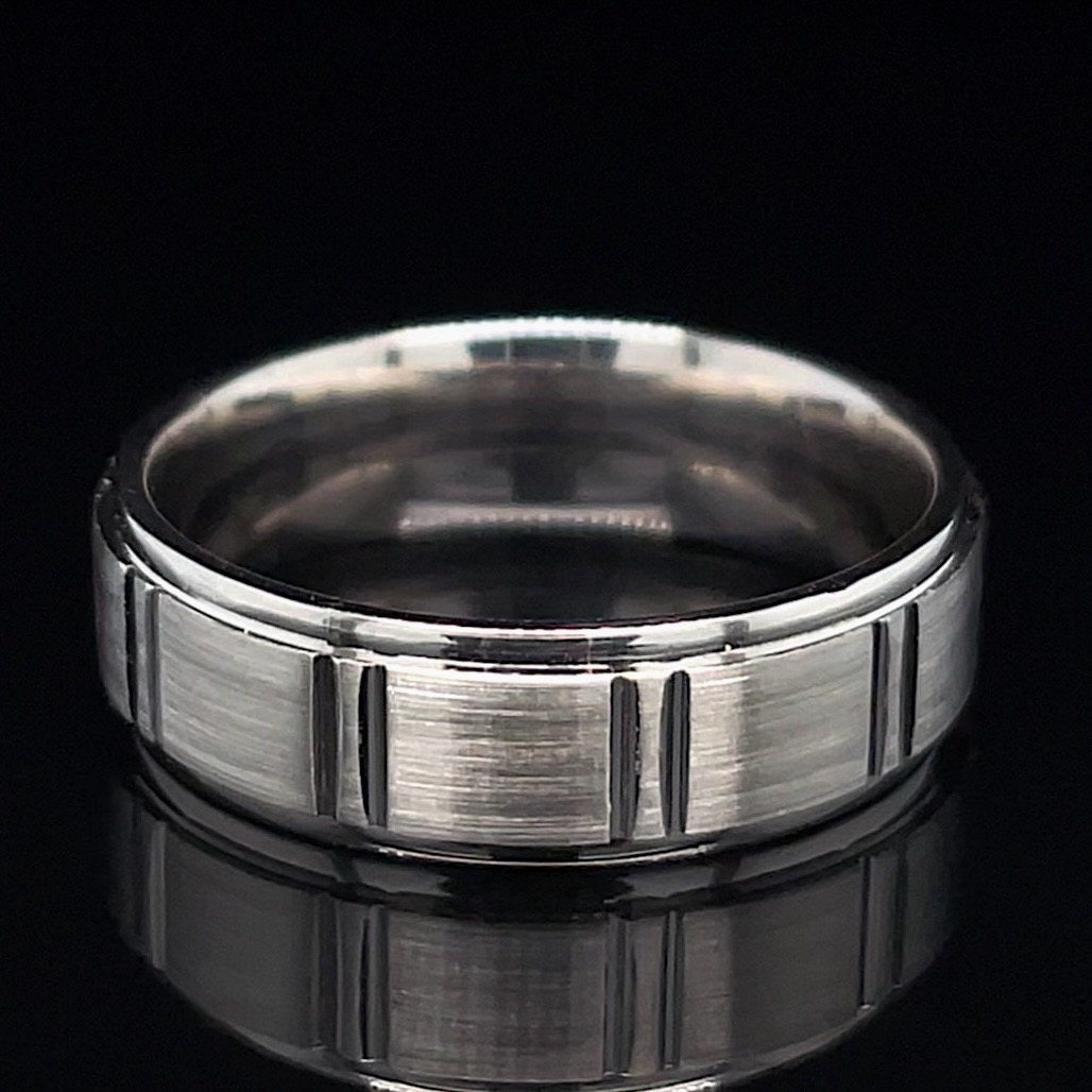 Crafted of 14k white gold, this unique ring features a square pattern. This ring is 6.5mm wide and is size 10, and can be sized up or down free of charge. We do our best to capture the vibrancy of the stones and metal, though this piece looks even better in person.