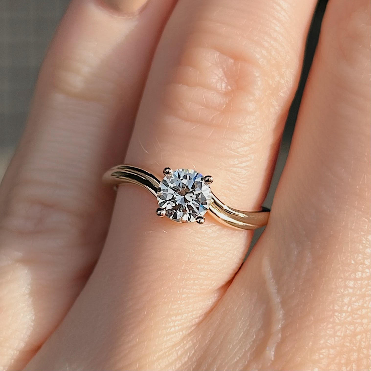 One natural old mine cut diamond = 1.64 carats, fancy yellow color, SI2 clarity.