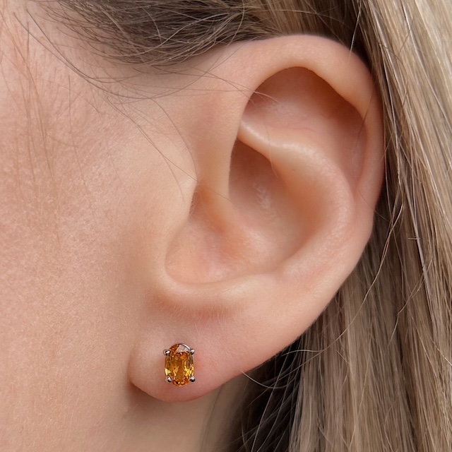 Crafted of 14k white gold, these recycled studs feature genuine, bright orange sapphires in a classic four prong setting. We do our best to capture the vibrancy of the stones and metal, though these earrings are even more beautiful in person!