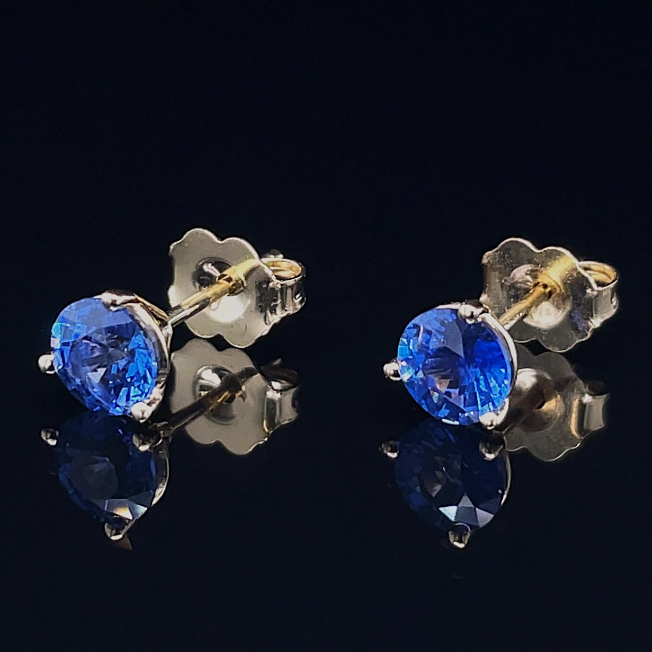 Crafted of 14k yellow gold, these recycled studs feature genuine sapphires in a classic three prong, martini setting. These deep, sparkling sapphires are reminiscent of soft blue velvet and bring a pop of color to any occasion! We do our best to capture the vibrancy of the stones and metal, though these earrings are even more beautiful in person!