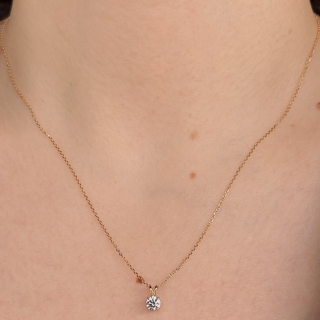 Crafted of 14k yellow gold, this beautiful pendant features a sparkling natural round brilliant diamond set in four prongs. Perfect for everyday wear and the fancier occasions in life. We do our best to capture the vibrancy of the stones and metal, though this piece is even more beautiful in person!