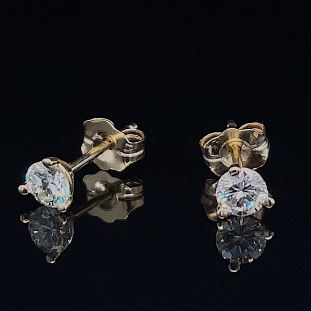 These 14K yellow gold diamond studs feature 2 stunning round brilliant diamonds showcased in a classic 3 prong, martini setting. Featuring recycled diamonds set in recycled gold. We do our best to capture the vibrancy of the stones and metal, though these earrings are even more beautiful in person!