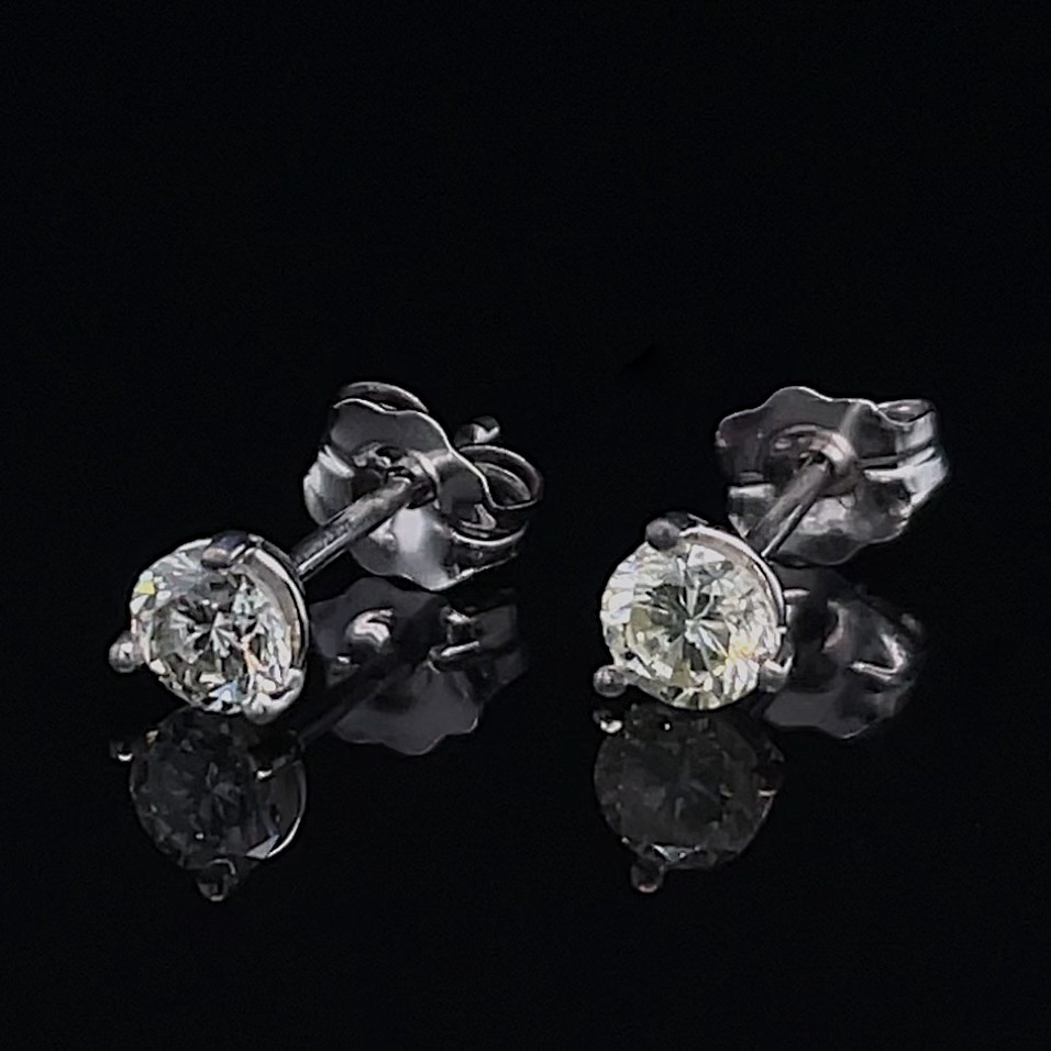 These 14k white gold diamond studs feature two beautiful natural round brilliant diamonds showcased in a classic martini setting. We do our best to capture the vibrancy of the stones and metal, though these earrings are even more beautiful in person!