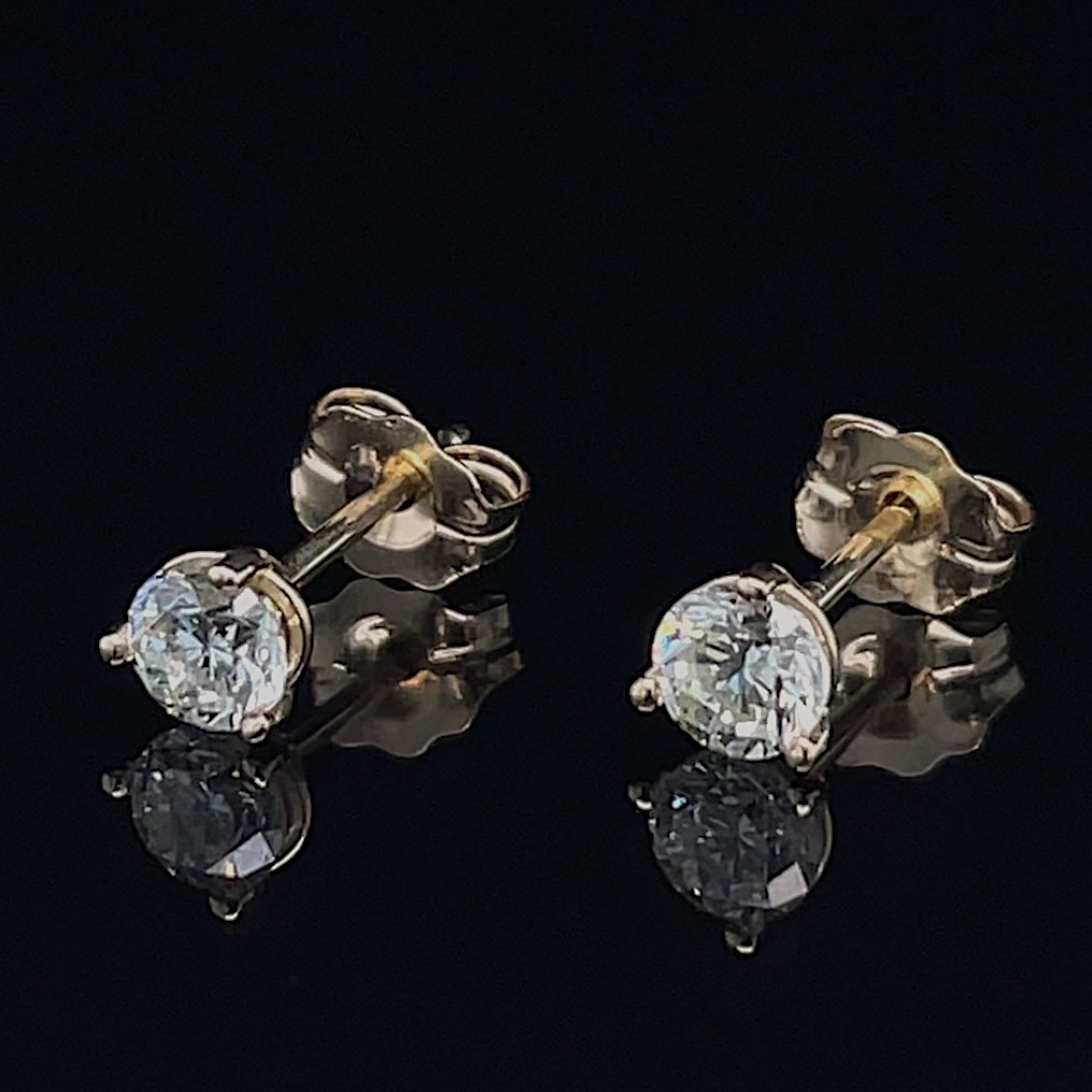 Crafted of 14k yellow gold, these recycled diamond studs feature natural round brilliant diamonds showcased in a three prong martini setting. We do our best to capture the vibrancy of the stones and metal, though these earrings are even more beautiful in person!