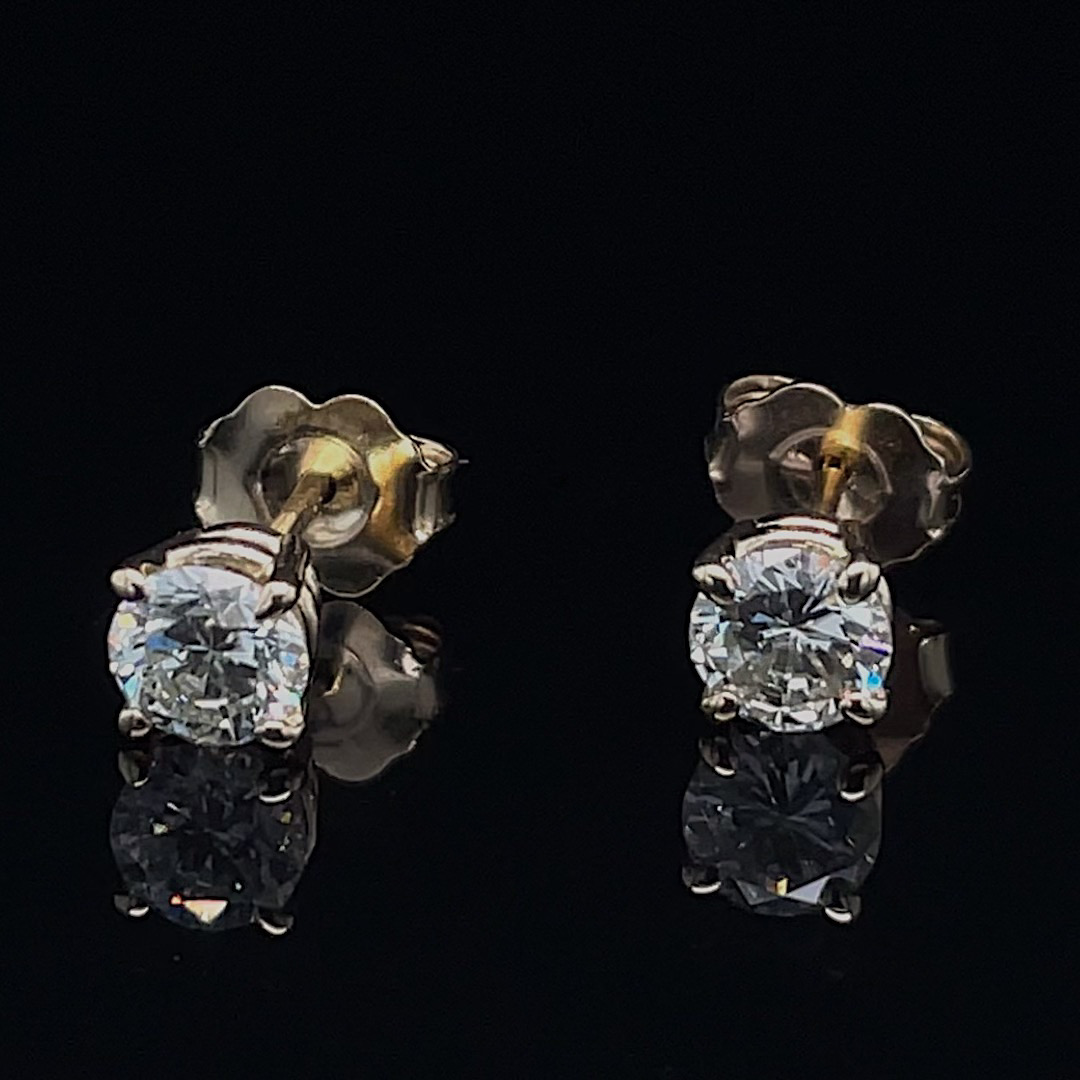 2 natural round brilliant diamonds = .45 carats total weight, J color, SI1 clarity.