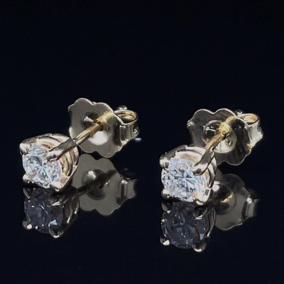 These 14K yellow gold diamond studs feature 2 sparkling natural round brilliant diamonds showcased in a classic 4 prong setting. We do our best to capture the vibrancy of the stones and metal, though these earrings are even more beautiful in person!