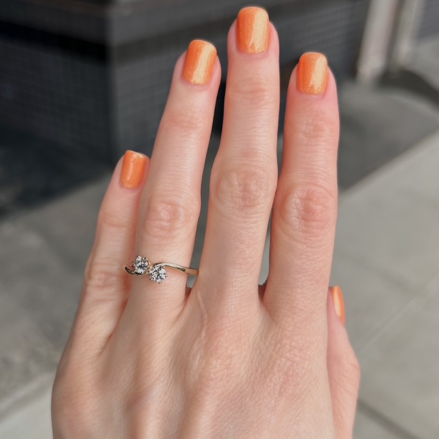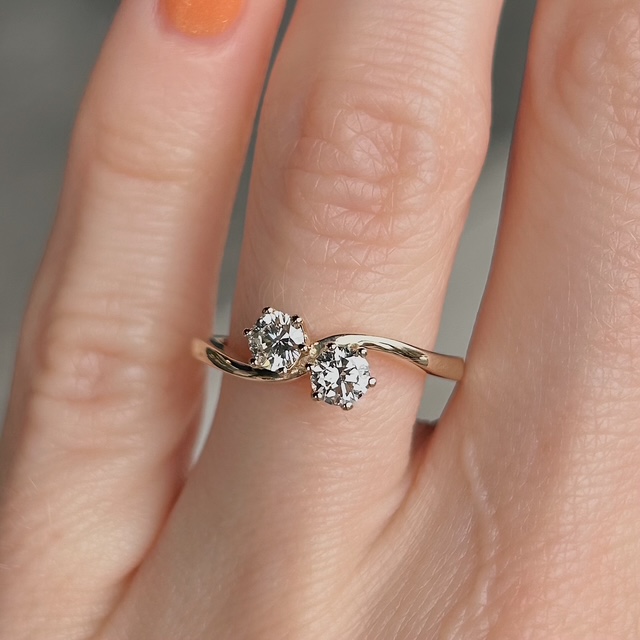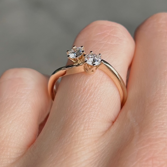 Crafted of 14k yellow gold, this recycled ring features natural round brilliant diamonds in a toi et moi mounting. The term “toi et moi” is French for “you and me” and is symbolic of the union of two souls. How sweet! We do our best to capture the vibrancy of the stones and metal, though this ring is even more beautiful in person.