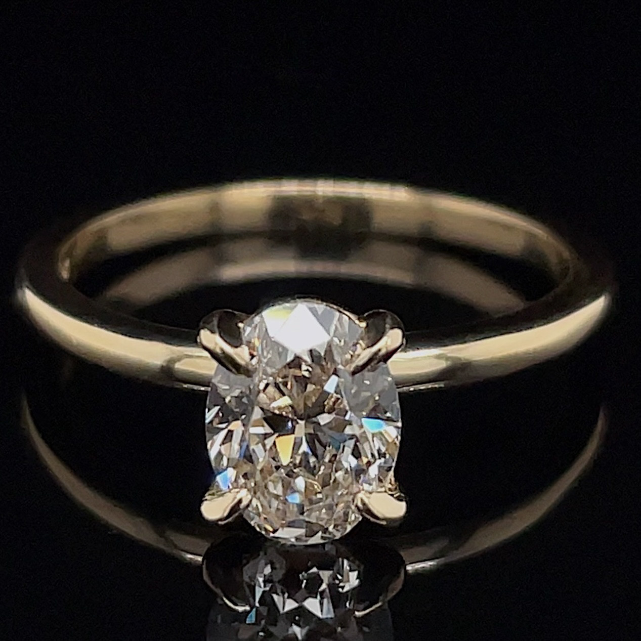 1 natural GIA certified recycled oval diamond = 1.01 carats, J color, VS1 clarity.