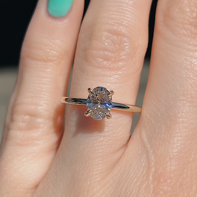 Crafted of 14k yellow gold, this beautiful ring features a recycled GIA certified natural oval diamond in a four prong setting. We do our best to capture the vibrancy of the stones, though they are even more beautiful in person. Crafted of 100% recycled metal and stones.
