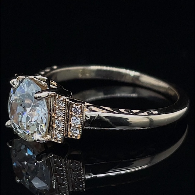 One natural old European cut diamond = 1.60 carats, L color, SI2 clarity.