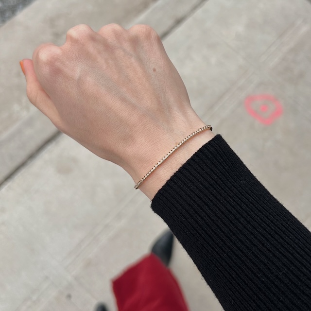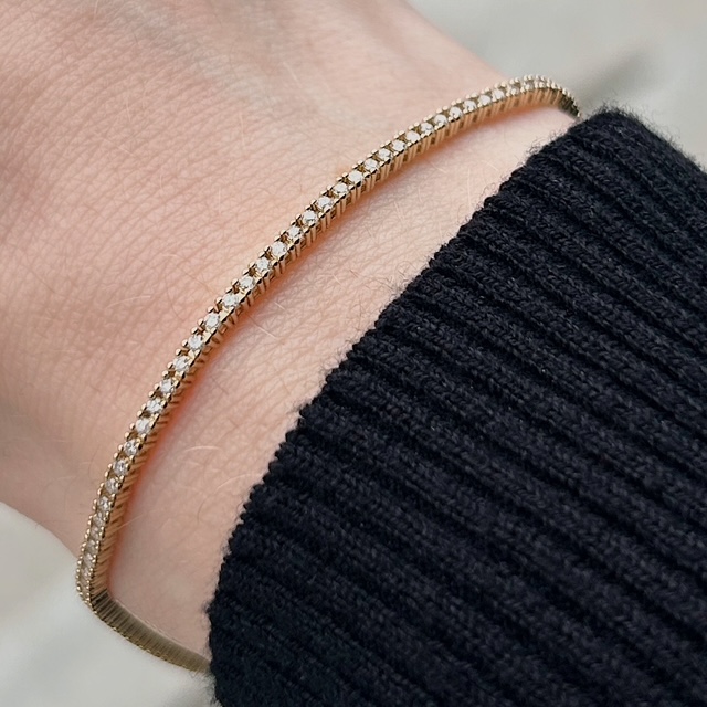 This bracelet is the perfect gift or self purchase! Crafted of 14k yellow gold, this bracelet features sparkling natural round brilliant diamonds in a classic tennis bracelet. This bracelet looks great on its own or stacked with other bracelets. We try to capture the vibrancy of our pieces in the photos, though this piece is even more beautiful in person.