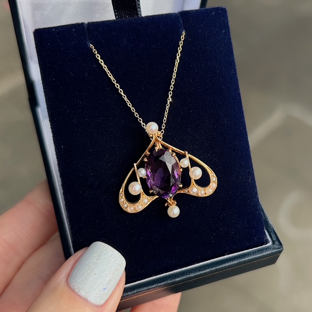 Antique Amethyst & Pearl Lavalier Pendant
